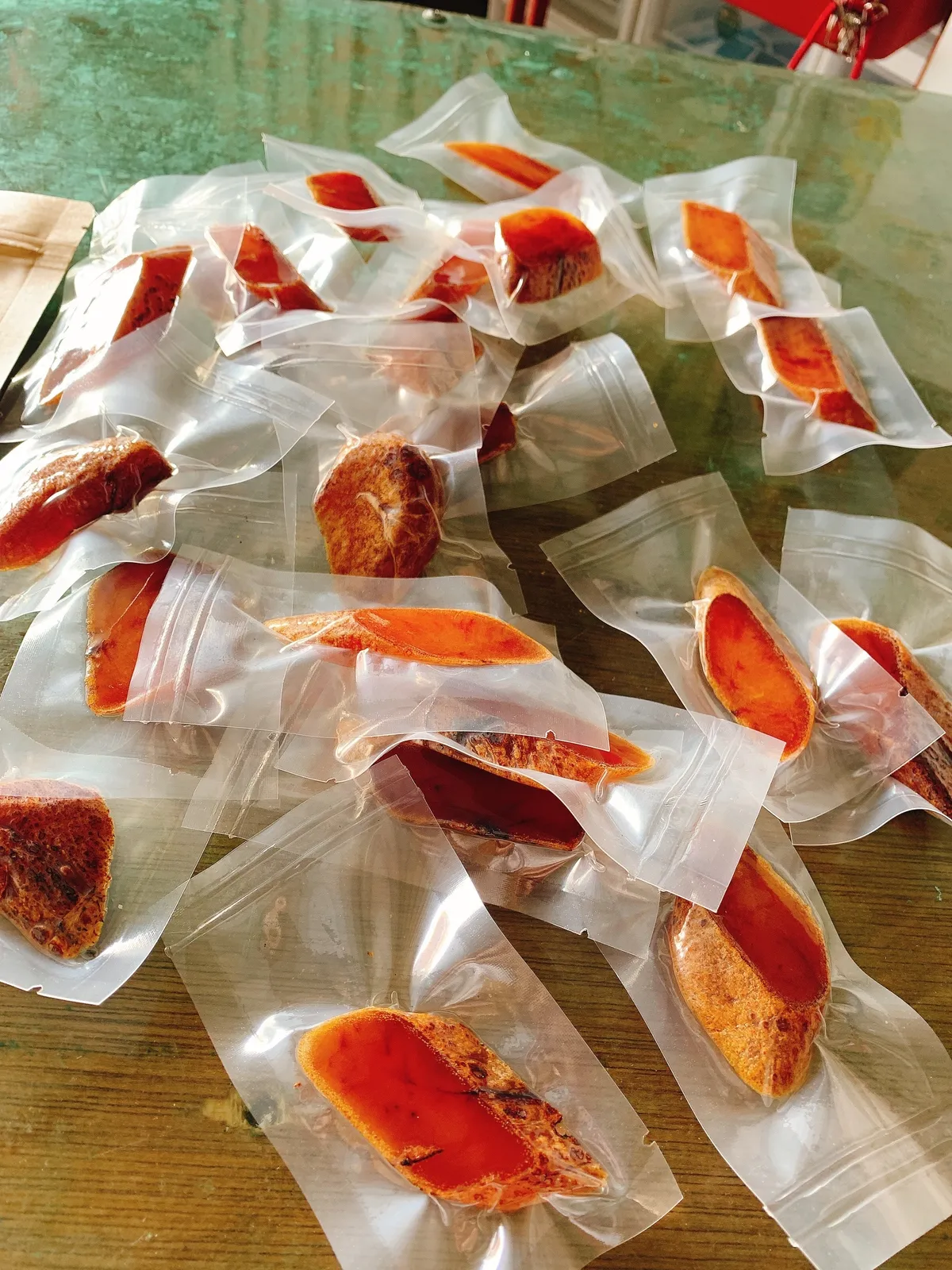 雜貨店必買款.-大包滿足又實惠年銷售百包 ,回購NO1顛覆您心中的一口烏用5兩以上的野生烏魚子 獨家醃製高粱酒炙燒技術厚切一片片 銷魂的一口烏魚子追劇必備單品,完全停不下來每包280g-/+10%大約23-26片二款包裝選擇1.牛皮紙袋2.牛皮紙盒*1個大盒放置冷凍超好吃請冷凍-18℃以下保存 保存期限:冷凍3個月 冷藏1個月常溫7天,